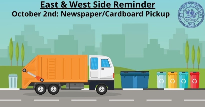 Peekskill, NY residents reminded to set out newspaper and cardboard for pickup on August 28th.